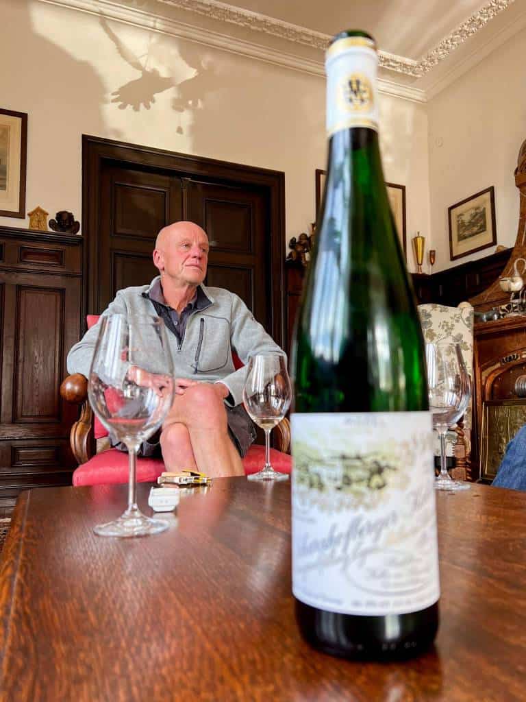 Kada pretražujete internet u vezi sa ovom vinarijom, koja nije poznata samo ljubiteljima vina, uglavnom nailazite na superlative: najbolji plemeniti slatki rajnski rizling na svetu, legendarna vinarija, najskuplje vino… Ali kada lično upoznate Egona Müllera IV – obučenog u radne cipele i udobne kratke cargo pantalone – i zamolite ga da predstavi svoju vinariju, on ne pominje nijedan od tih superlativa. Umesto toga, ponosno se osvrće na dugu tradiciju: „Moja porodica ovde na Saaru živi nešto više od 200 godina. Naša vinarija je nekada bila deo benediktinskog manastira Svete Marije u Treviru. Kada su Francuzi došli ovde posle Francuske revolucije, crkvenu imovinu su konfiskovali i prodali. Moj pradeda, koji je bio monah u manastiru, iskoristio je priliku i kupio imanje ovde na Šarcofbergu.“