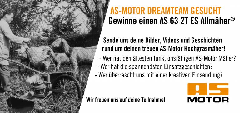 Pod motom „Traži se Dreamteam“ AS-Motor je u periodu od 1. marta do 31. jula 2018. godine u potrazi za posebnim pričama o kosačicama za visoku travu. Allmäher® mašine kompanije AS-Motor često se koriste godinama, ponekad čak i kroz generacije. AS-Motor traži iskustva i priče sa i o vernim kosačicama. Prilikom učestvovanja u nagradnoj igri, važno je pridržavati se pravila igre i, pre svega, izdvojiti se među učesnicima.