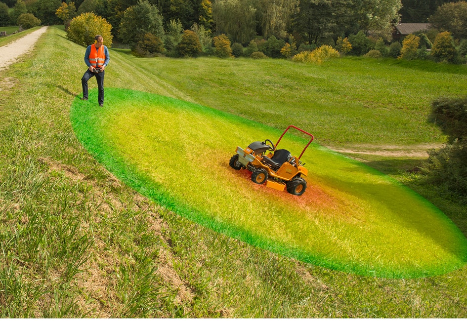 Iskusite potpunu terensku sposobnost i najveću snagu košenja – potpuno RC daljinski upravljano.